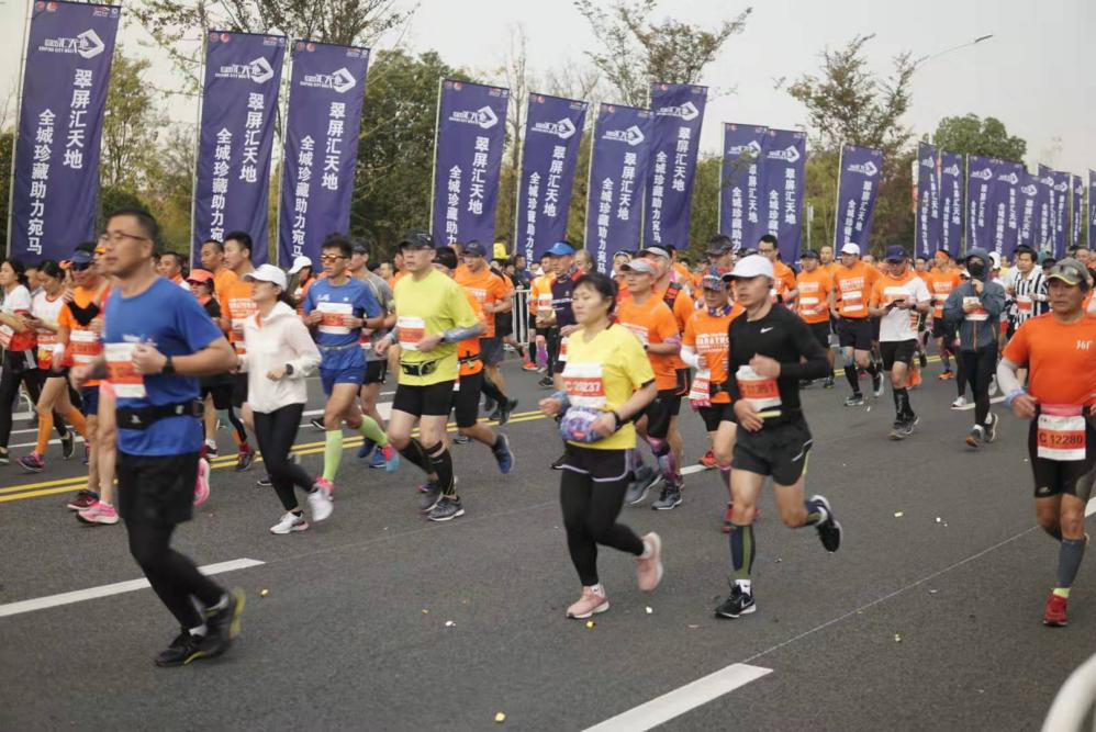 11月10日,2019锡山宛山湖国际马拉松在映月湖中央公园鸣枪起跑。来自27个国家、34个省份、198座城市的12000多名跑者带着热情,欢呼着出发,竞速在锡山如诗如画的“最美赛道”上,释放激情、挑战自我。
